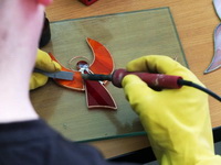 Witraż – ozdobne wypełnienie, wykonane z kawałków kolorowego szkła wprawianych w ołowiane ramki osadzone między żelazne sztaby. Ramki stanowią kontur rysunku, kreskowanie na szkle lub malowanie na nim przeźroczystymi farbami podkreśla charakterystyczne elementy (głowę, oczy, ręce, fałdowanie szat, cieniowanie figur itp.). Witraże stosowano głównie w budownictwie sakralnym. Technika witrażu znana była w starożytności jednak została rozpowszechniona od wczesnego średniowiecza, a rozwinęła się w sztuce gotyckiej. Renesans witrażownictwa nastąpił na przełomie wieków XIX i XX w sztuce secesji